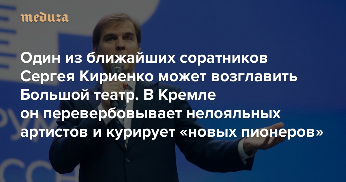 Один из ближайших соратников Сергея Кириенко может возглавить Большой театр. В Кремле он перевербовывает нелояльных артистов и курирует «новых пионеров»