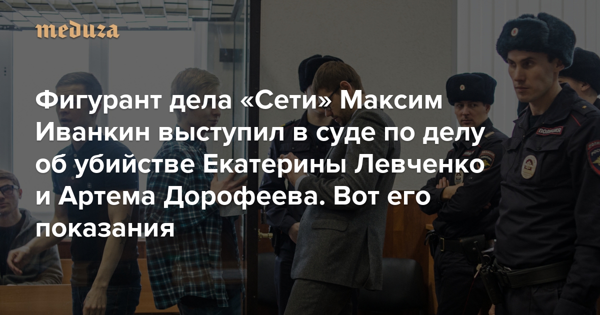 «Я понял, что эту тему лучше не поднимать» Фигурант дела «Сети» Максим Иванкин выступил в суде по делу об убийстве Екатерины Левченко и Артема Дорофеева. Вот его показания