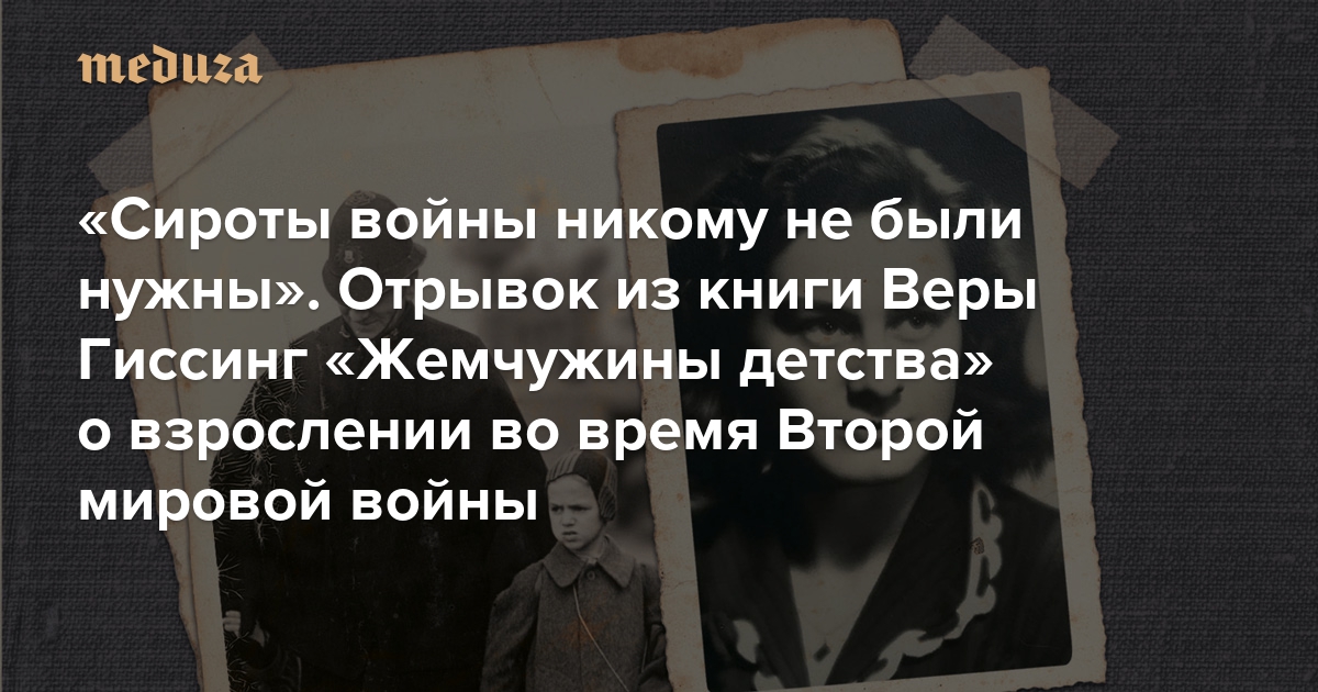 «Сироты войны никому не были нужны» Отрывок из книги Веры Гиссинг «Жемчужины детства» о взрослении во время Второй мировой войны