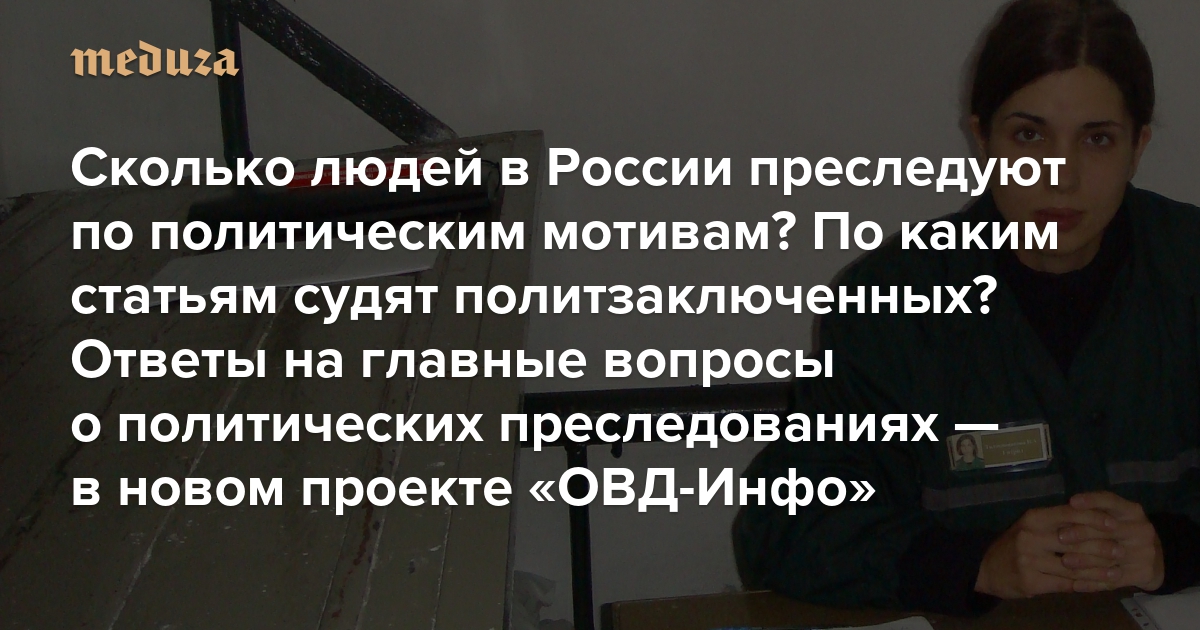 Сколько людей в России преследуют по политическим мотивам? По каким статьям судят политзеков? И какой регион самый опасный с точки зрения репрессий? Ответы на главные вопросы о политических преследованиях в РФ — в новом проекте «ОВД-Инфо»