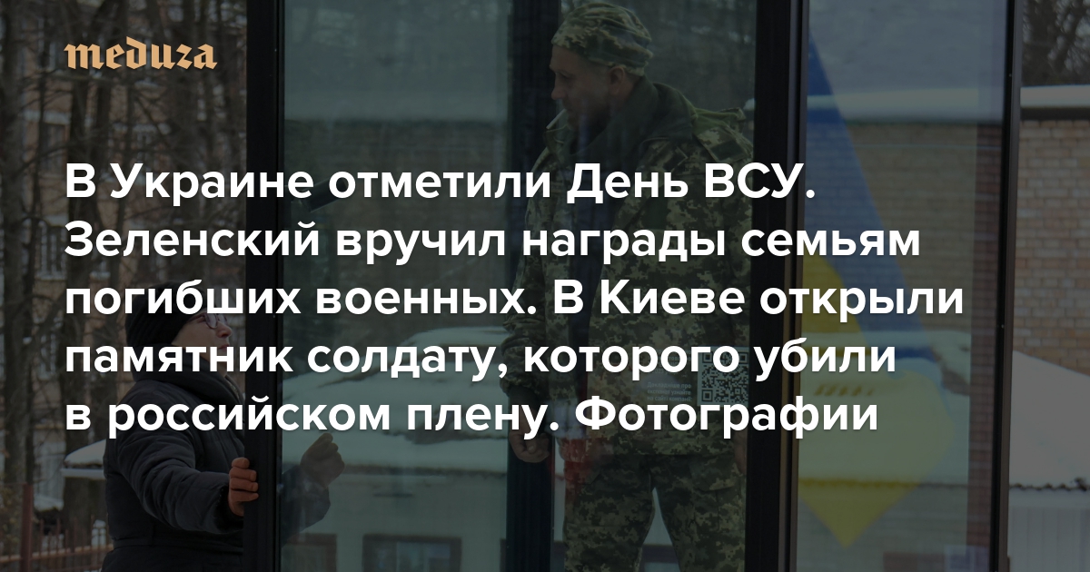 В Украине отметили День ВСУ. Зеленский вручил награды семьям погибших военных. В Киеве открыли памятник солдату, которого убили в российском плену Шестьсот пятьдесят первый день войны. Фотографии