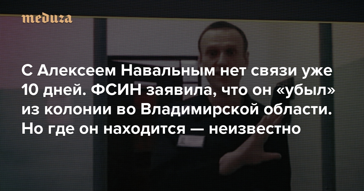 С Алексеем Навальным нет связи уже 10 дней. ФСИН заявила, что он «убыл» из колонии во Владимирской области. Но где он находится — неизвестно
