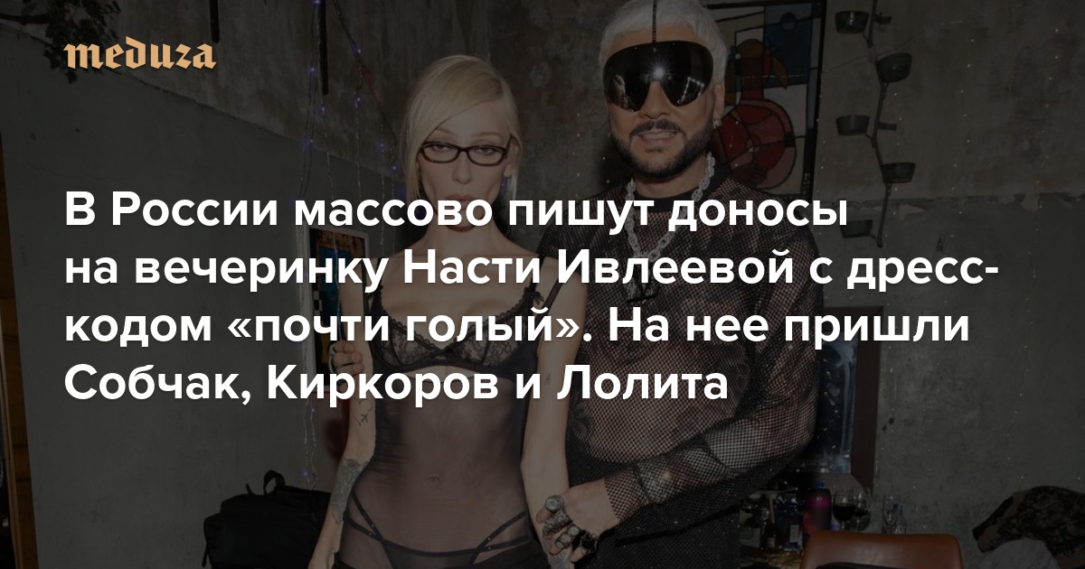 В России массово пишут доносы на вечеринку Насти Ивлеевой с дресс-кодом «почти голый». На нее пришли Собчак, Киркоров и Лолита