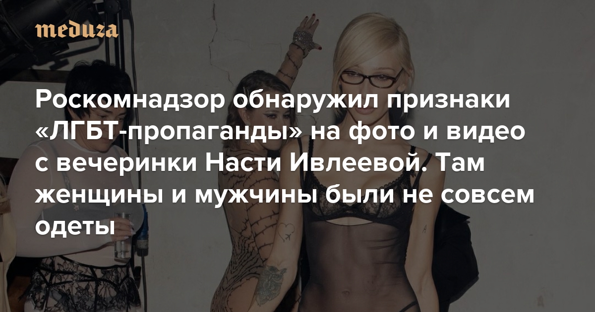 Роскомнадзор обнаружил признаки «ЛГБТ-пропаганды» на фото и видео с вечеринки Насти Ивлеевой Там женщины и мужчины были не совсем одеты