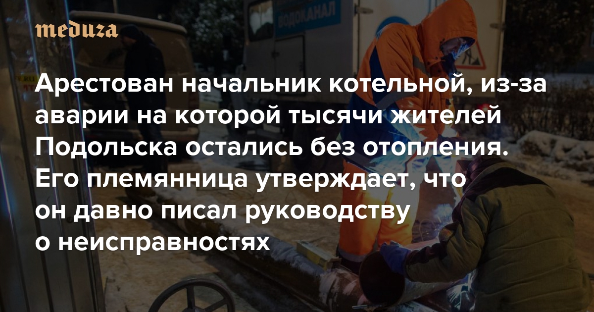 Арестован начальник котельной, из-за аварии на которой тысячи жителей Подольска остались без отопления. Его племянница утверждает, что он давно писал руководству о неисправностях Петицию за его освобождение подписали 20 тысяч человек