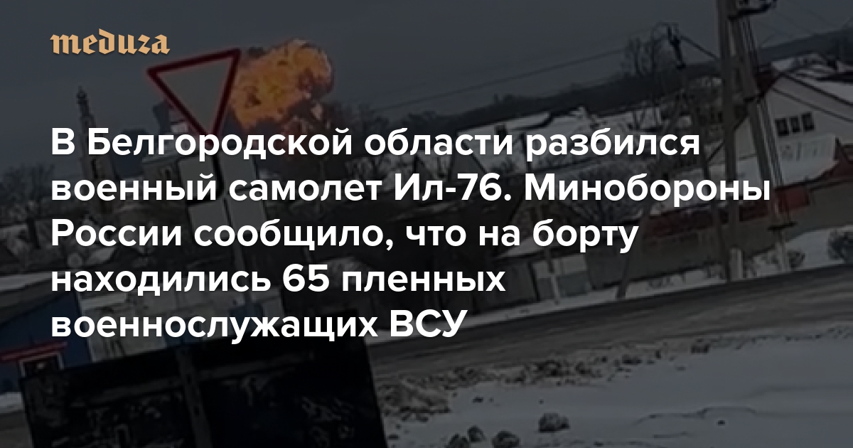 В Белгородской области разбился военный самолет Ил-76 Минобороны России сообщило, что на борту находились 65 пленных военнослужащих ВСУ