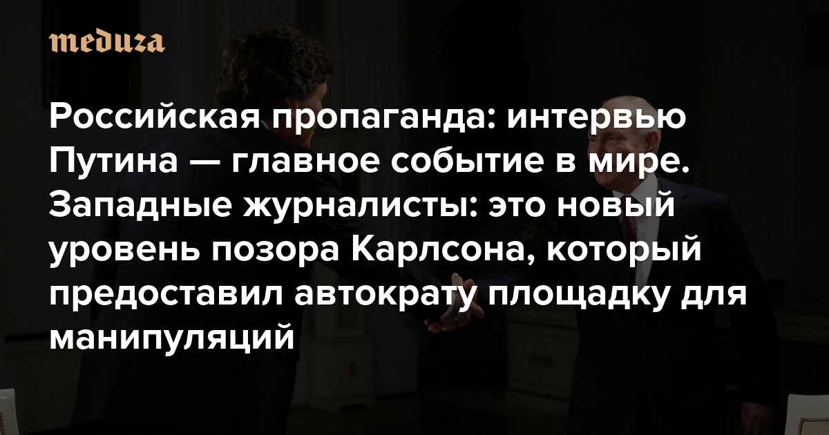 Российская пропаганда: интервью Путина — главное событие в мире Западные журналисты: это новый уровень позора Карлсона, который предоставил автократу площадку для манипуляций
