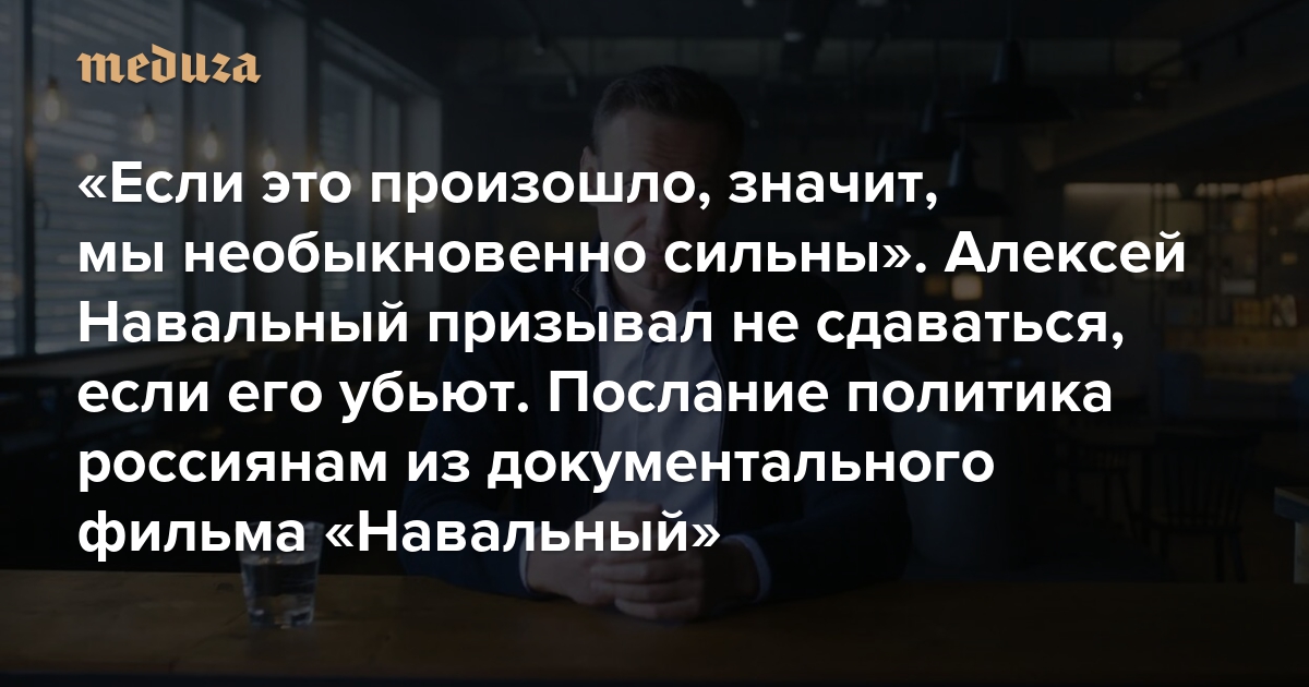 «Если это произошло, значит, мы необыкновенно сильны» Алексей Навальный призывал не сдаваться, если его убьют. Послание политика россиянам из документального фильма «Навальный»