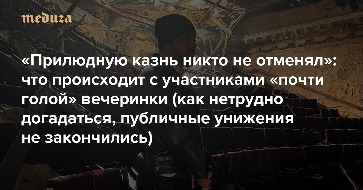 «Прилюдную казнь никто не отменял»: что происходит с участниками «почти голой» вечеринки (как нетрудно догадаться, публичные унижения не закончились) Этот материал, видимо, будет обновляться