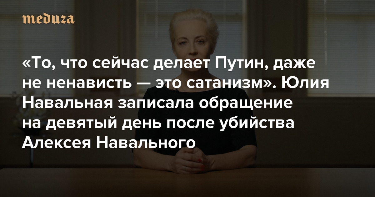 «То, что сейчас делает Путин, даже не ненависть — это сатанизм» Юлия Навальная записала обращение на девятый день после убийства Алексея Навального