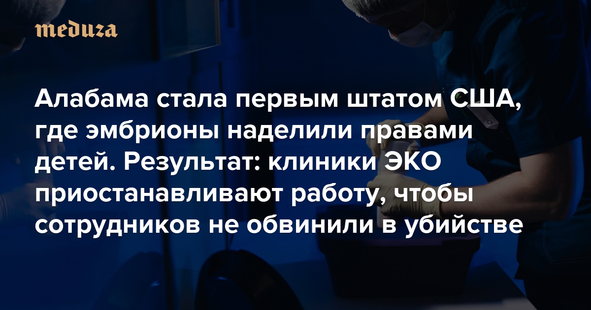 Алабама стала первым штатом США, где эмбрионы наделили правами детей. Результат: клиники ЭКО приостанавливают работу, чтобы сотрудников не обвинили в убийстве