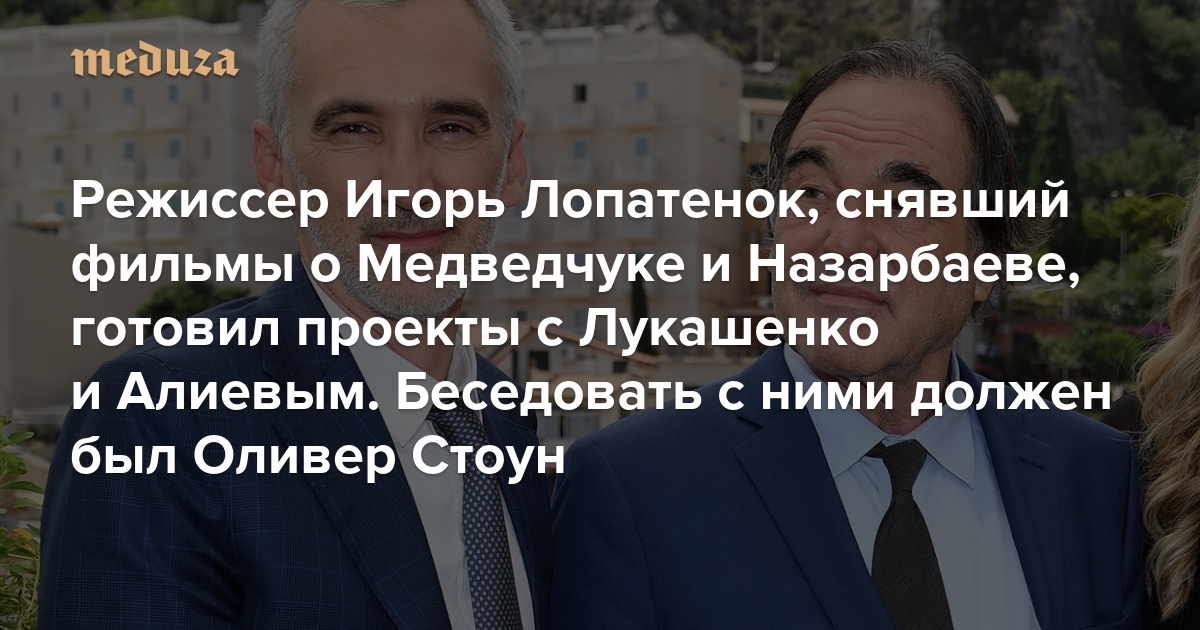 После событий на Майдане в 2014 году режиссер Игорь Лопатенок, переехавший из Украины в США задолго до этого, снял два фильма о протестах. Героем одного из них стал пророссийский политик Виктор Медведчук, а интервьюировал его американский режиссер Оливер Стоун, известный своим четырехсерийным фильмом о Путине. Он же стал соавтором еще одного проекта Лопатенка — восьмисерийного разговора с казахстанским президентом Нурсултаном Назарбаевым. Но на этом планы режиссера, как выяснили в своем совместном расследовании Центр исследования коррупции и организованной преступности (OCCRP) и казахстанское издание «Власть», не закончились. Из утечки электронных писем стало известно, что Лопатенок готовил еще как минимум два фильма с участием Стоуна — интервью Александра Лукашенко и президента Азербайджана Ильхама Алиева. Стоун в этих картинах должен был выступить в роли «продаваемой звезды», чтобы помочь «повысить репутацию» диктаторов на мировой арене. Однако после начала полномасштабной войны в Украине американский режиссер от участия в работе над фильмами отказался.