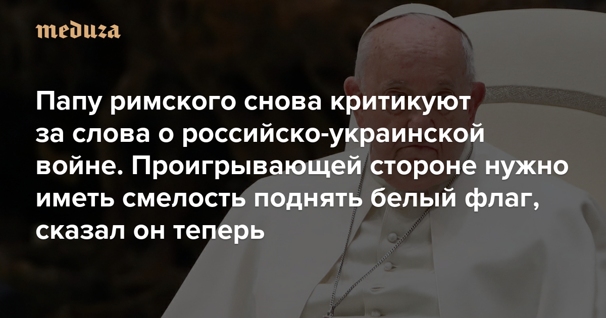 Папу римского в который раз критикуют за слова о российско-украинской войне. Проигрывающей стороне нужно иметь смелость поднять белый флаг, сказал он теперь