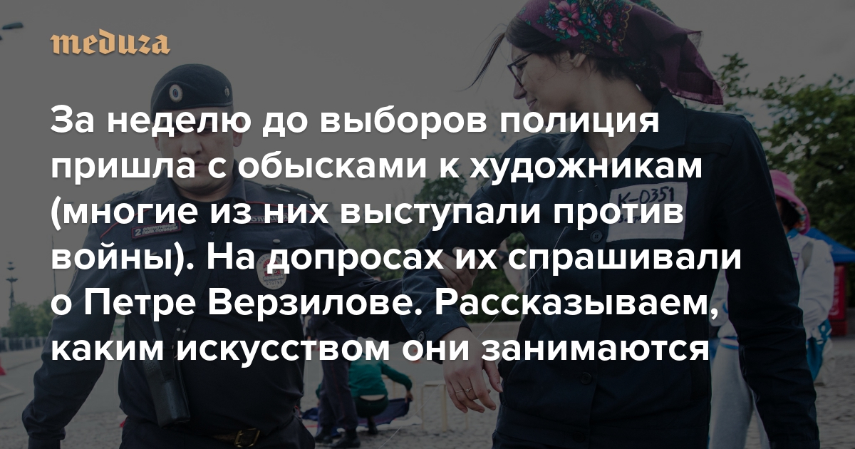 За неделю до выборов полиция пришла с обысками к художникам (многие из них выступали против войны). На допросах их спрашивали о Петре Верзилове Рассказываем, каким искусством они занимаются