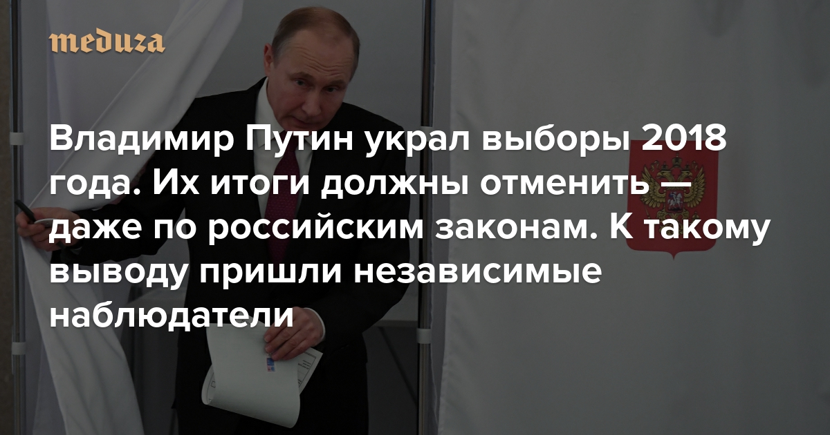 Владимир Путин украл выборы 2018 года. Их итоги должны отменить — даже по российским законам К такому выводу пришли независимые наблюдатели (они использовали нейросеть, видео с двух тысяч участков и метод Шпилькина)