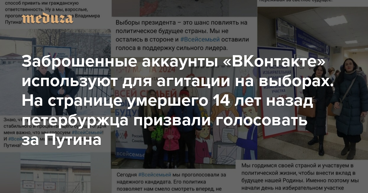 Заброшенные аккаунты «ВКонтакте» используют для агитации на выборах На странице умершего 14 лет назад петербуржца призвали голосовать за Путина
