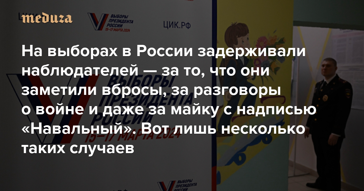 На выборах в России задерживали наблюдателей — за то, что они заметили вбросы, за разговоры о войне и даже за майку с надписью «Навальный» Вот лишь несколько таких случаев