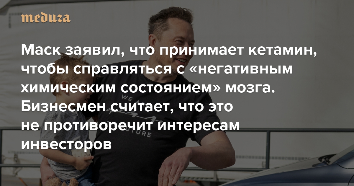 Миллиардер, генеральный директор Tesla, основатель SpaceX и владелец соцсети Х Илон Маск заявил, что у него в мозгу периодически возникает «негативное химическое состояние», похожее на депрессию. Об этом он рассказал в интервью бывшему ведущему CNN Дону Лемону. Выйти из «негативного состояния», утверждает Маск, ему помогает кетамин — сильнодействующее вещество, которое обычно используется как анестетик. По словам бизнесмена, он принимает его по рецепту врача.