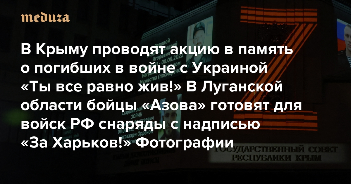 В Крыму проводят акцию в память о погибших в войне с Украиной «Ты все равно жив!» В Луганской области бойцы «Азова» готовят для войск РФ снаряды с надписью «За Харьков!» Семьсот семьдесят шестой день войны. Фотографии