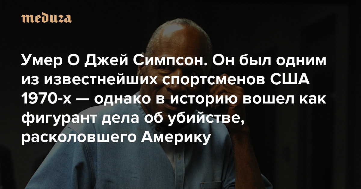 Умер О Джей Симпсон Он был одним из известнейших спортсменов США 1970-х — однако в историю вошел как фигурант дела об убийстве, расколовшего Америку