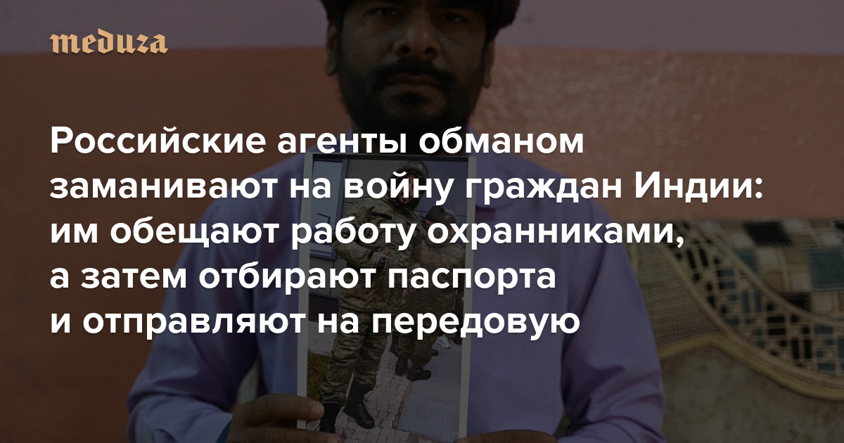Российские агенты обманом заманивают на войну граждан Индии: им обещают работу охранниками, а затем отбирают паспорта и отправляют на передовую «Би-би-си» рассказала истории двоих индийцев, которым удалось вернуться назад