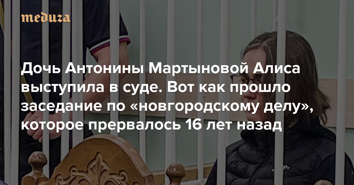«Я называю себя Марией» Дочь Антонины Мартыновой Алиса выступила в суде. Вот как прошло заседание по «новгородскому делу», которое прервалось 16 лет назад