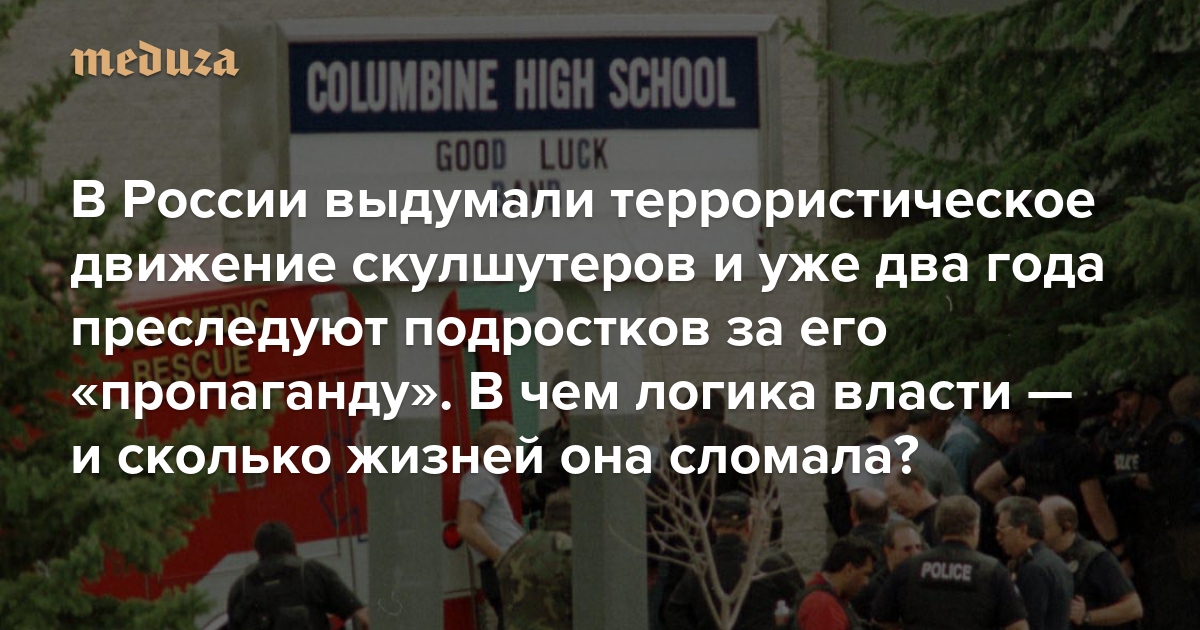 В 2010-х годах подобные нападения в школах начались и в России. В какой-то момент государство решило, что стрельба в колледжах и гимназиях происходит не из-за буллинга, неспособности некоторых подростков справиться с агрессией, психических проблем школьников и даже не из-за действий убийц-одиночек. Власти объявили, что трагедии — это работа некоей организованной злой силы. Так экспертами из государственных вузов, чиновниками и судьями была выдумана (а затем запрещена) организация «Колумбайн», о которой за пределами РФ никогда не слышали. «Медуза» рассказывает о том, как российские силовики постепенно перевели сложную тему подросткового насилия на понятный им язык «борьбы с терроризмом» — и о том, к чему это привело. Спойлер: вероятно, все это сломало куда больше жизней, чем спасло.