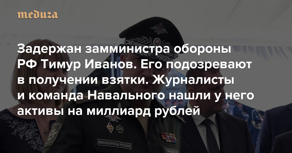 Задержан замминистра обороны РФ Тимур Иванов Его подозревают в получении взятки. Журналисты и команда Навального нашли у него активы на миллиард рублей
