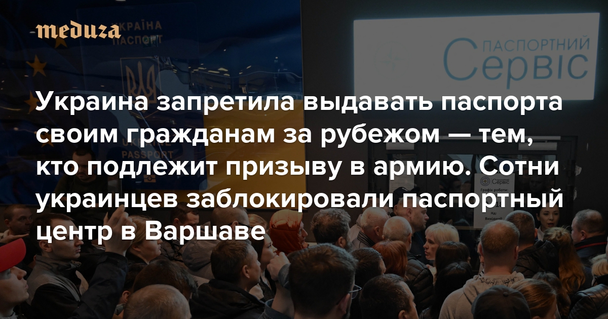 Украина запретила выдавать паспорта своим гражданам за рубежом — тем, кто подлежит призыву в армию Сотни украинцев заблокировали паспортный центр в Варшаве. Документы нельзя получить, даже если они уже готовы