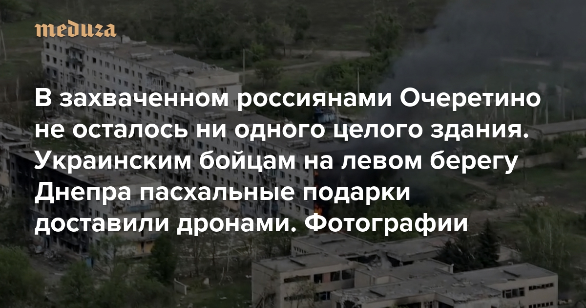В захваченном россиянами Очеретино не осталось ни одного целого здания. Украинским бойцам на левом берегу Днепра пасхальные подарки доставили дронами Восемьсот второй день войны. Фотографии