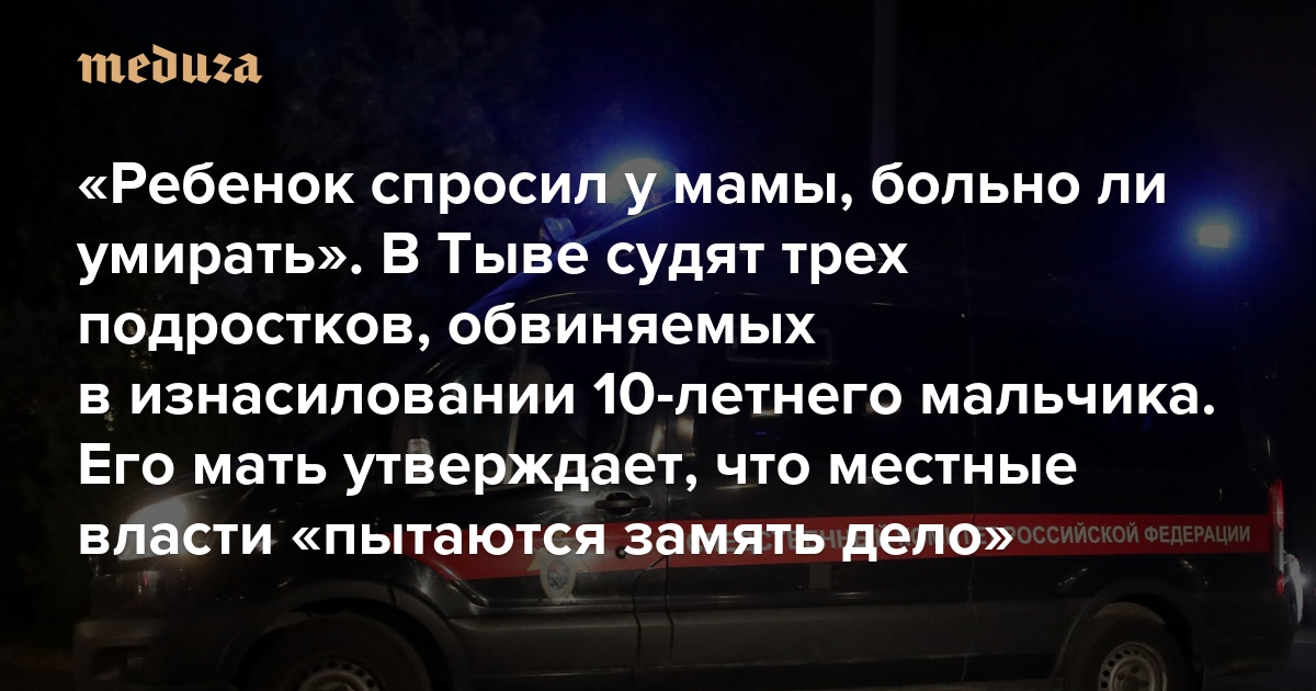 «Ребенок спросил у мамы, больно ли умирать» В Тыве судят трех подростков, обвиняемых в изнасиловании 10-летнего мальчика. Его мать утверждает, что местные власти «пытаются замять дело»