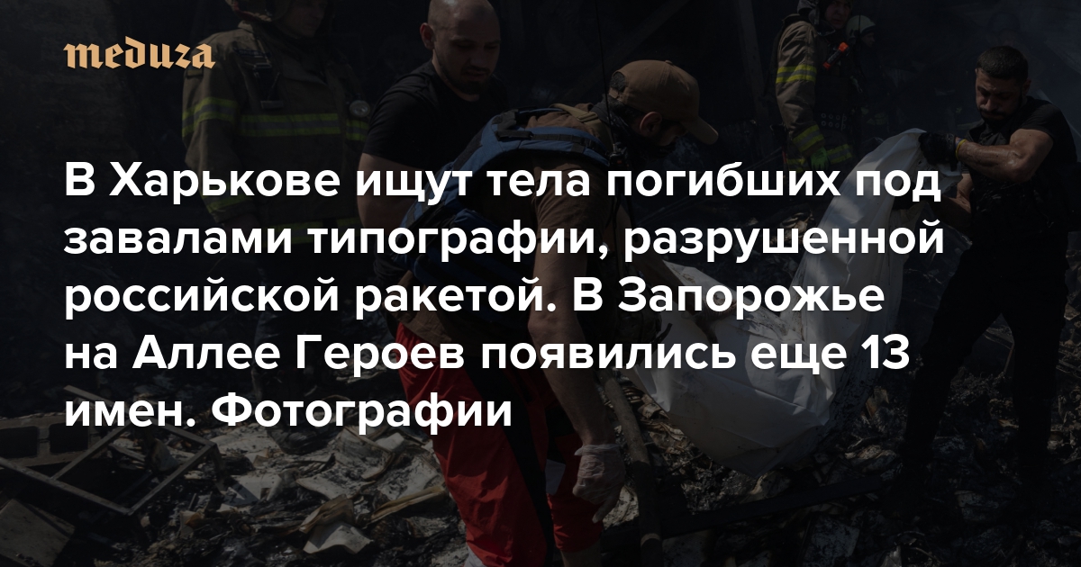 В Харькове ищут тела погибших под завалами типографии, разрушенной российской ракетой. В Запорожье на Аллее Героев появились еще 13 имен Восемьсот двадцатый день войны. Фотографии