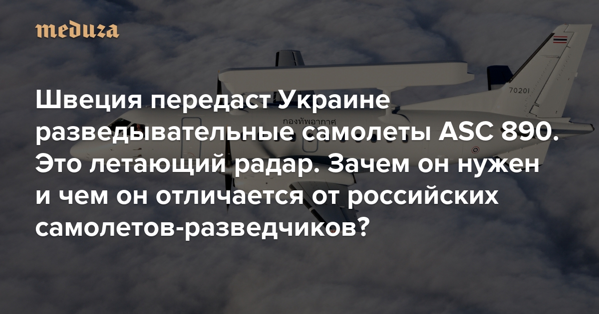 Швеция передаст Украине разведывательные самолеты ASC 890. Это летающий радар Зачем он нужен и чем он отличается от российских самолетов-разведчиков?