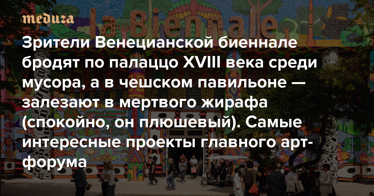 Зрители Венецианской биеннале бродят по палаццо XVIII века среди мусора, а в чешском павильоне — залезают в мертвого жирафа (спокойно, он плюшевый) Рассказываем о самых интересных проектах главного арт-форума планеты