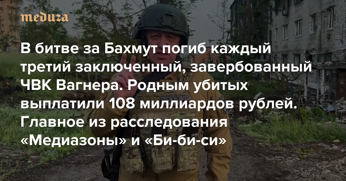 В битве за Бахмут погиб каждый третий заключенный, завербованный ЧВК Вагнера. Родным убитых выплатили 108 миллиардов рублей Главное из расследования «Медиазоны» и «Русской службы Би-би-си»