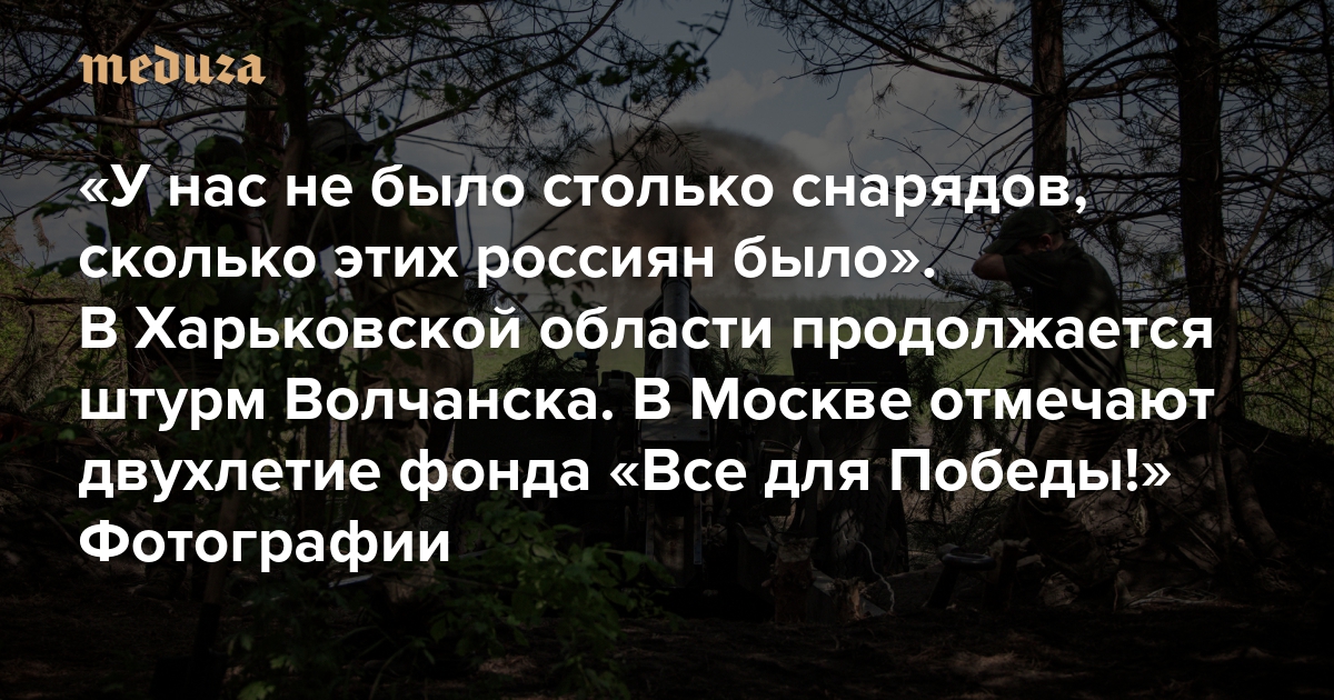 «У нас не было столько снарядов, сколько этих россиян было». В Харьковской области продолжается штурм Волчанска. В Москве отмечают двухлетие фонда «Все для Победы!» Восемьсот сорок шестой день войны. Фотографии