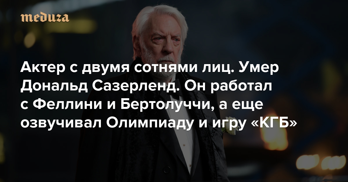 Актер с двумя сотнями лиц Умер Дональд Сазерленд. Он работал с Феллини и Бертолуччи, а еще озвучивал Олимпиаду и игру «КГБ»