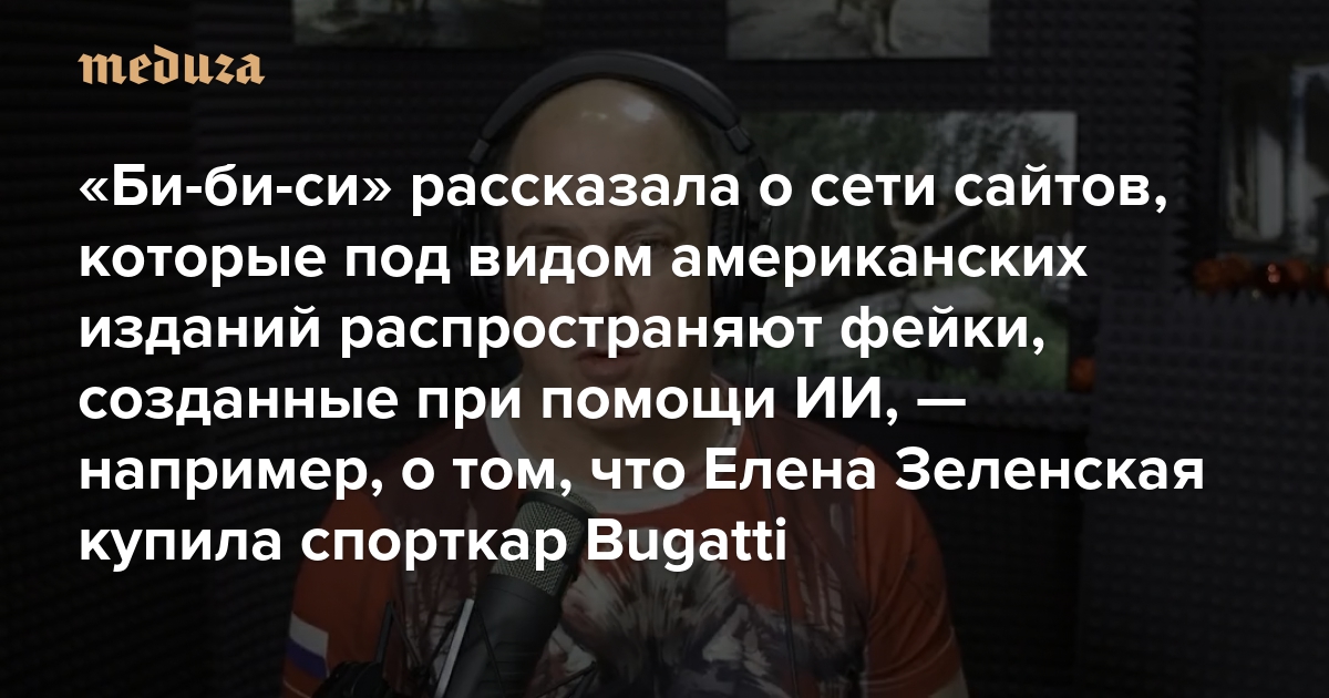 «Би-би-си» рассказала о сети сайтов, которые под видом американских изданий распространяют фейки, созданные при помощи ИИ, — например, о том, что Елена Зеленская купила спорткар Bugatti К кампании причастен бывший полицейский Марк Дуган, бежавший в Россию
