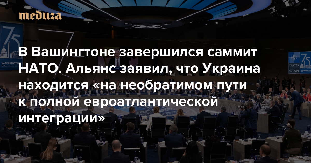 Украина находится «на необратимом пути к полной евроатлантической интеграции, включая членство в НАТО», говорится в коммюнике по итогам саммита альянса в Вашингтоне. В тексте содержится обещание поддерживать Киев на этом пути; приглашение присоединиться к альянсу Украине будет направлено, «когда союзники согласятся и будут выполнены условия».