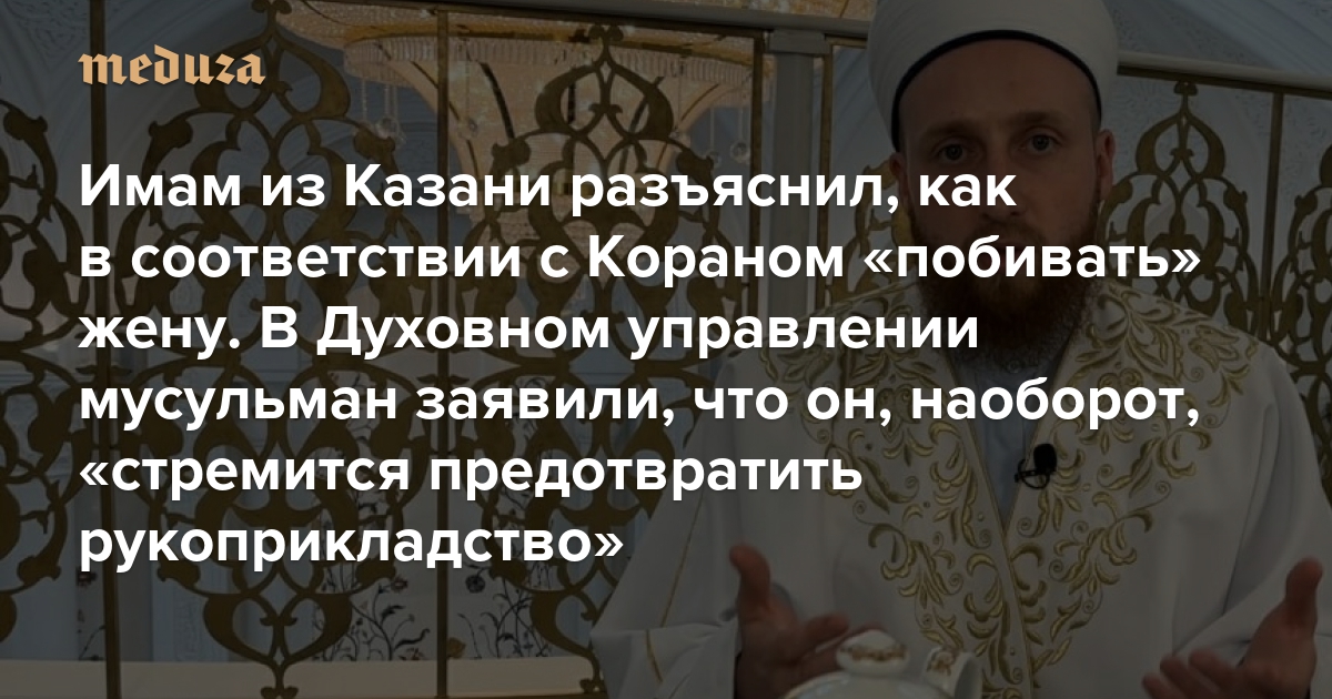 Имам из Казани разъяснил, как в соответствии с Кораном «побивать» жену, которая «делает что-то не так» В Духовном управлении мусульман Татарстана заявили, что имам, наоборот, «стремится предотвратить рукоприкладство»