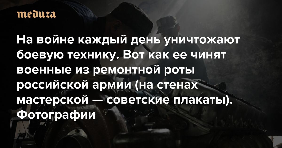 На войне каждый день уничтожают боевую технику. Вот как ее чинят военные из ремонтной роты российской армии (на стенах мастерской — советские плакаты). Фотографии