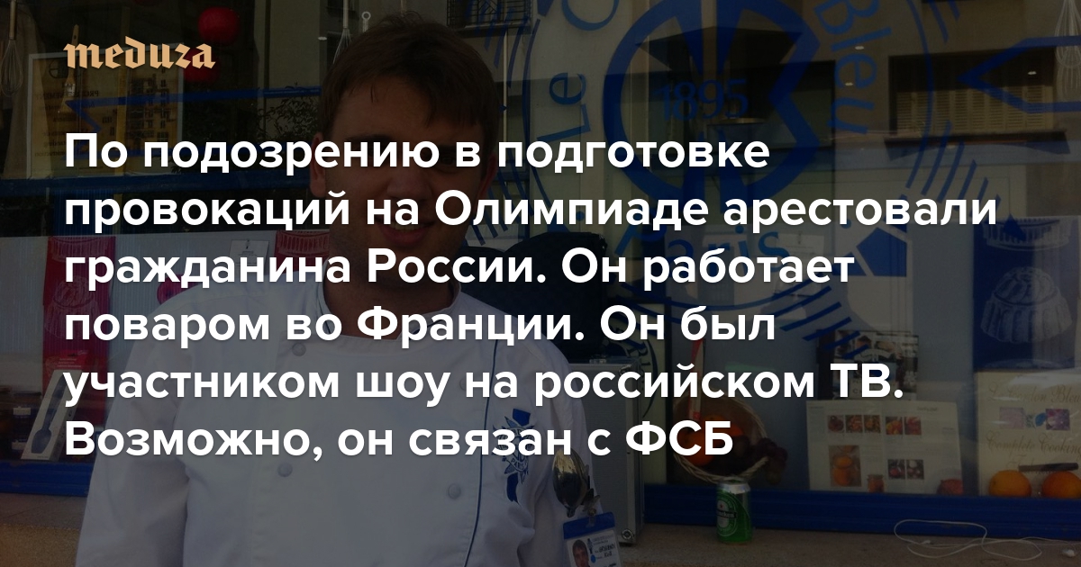 По подозрению в подготовке провокаций на Олимпиаде арестовали гражданина России. Он работает поваром во Франции. Он был участником шоу на российском ТВ. Возможно, он связан с ФСБ Главное из расследования The Insider, Spiegel и Le Monde