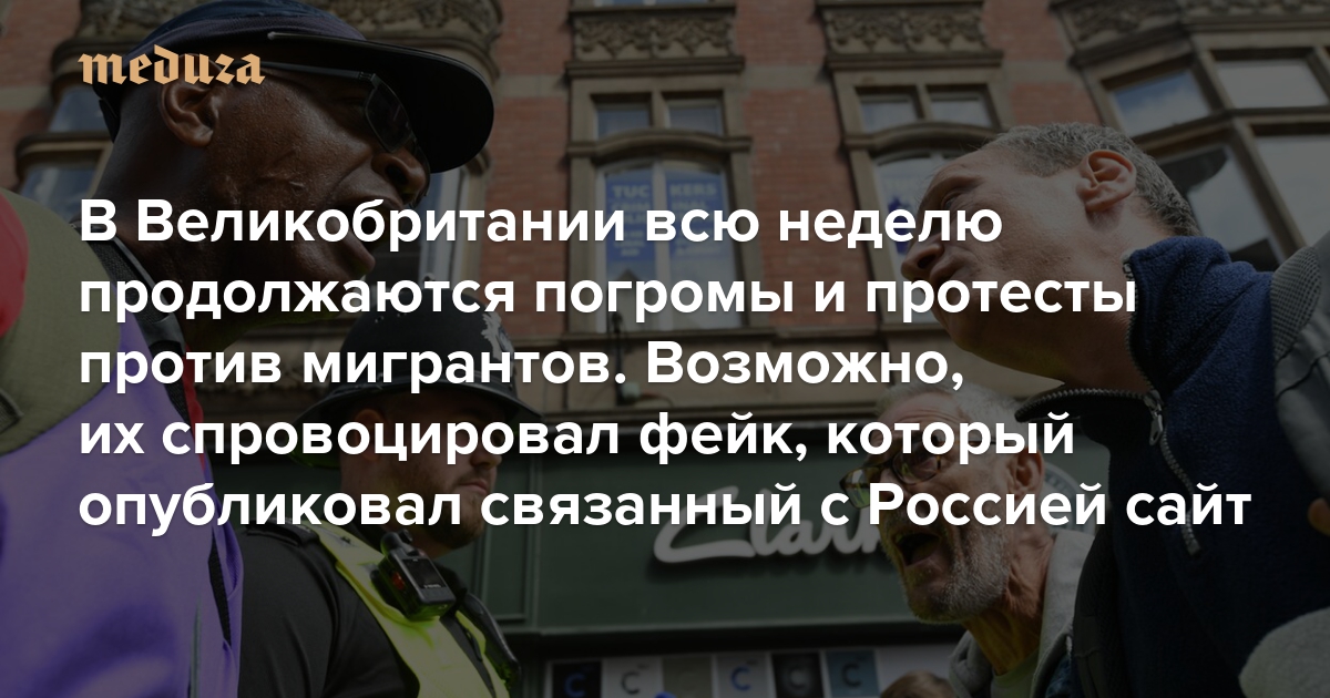В Великобритании всю неделю продолжаются погромы и протесты против мигрантов Возможно, их спровоцировал фейк, который опубликовал связанный с Россией сайт