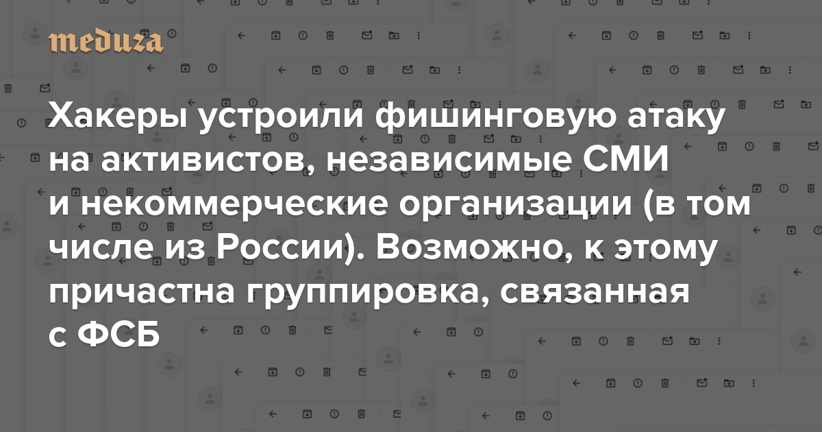Хакеры устроили фишинговую атаку на активистов, независимые СМИ и некоммерческие организации (в том числе из России) Они создавали ящики в ProtonMail, похожие на адреса правозащитников. Возможно, к этому причастна группировка, связанная с ФСБ