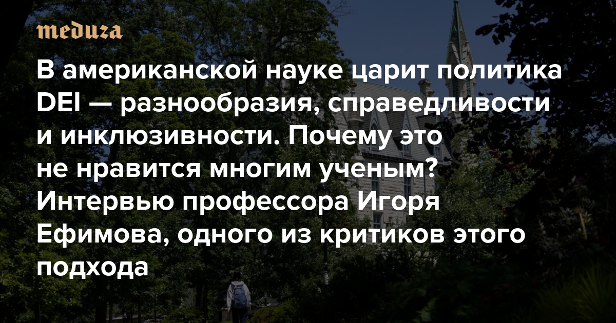 В американской науке царит политика DEI — разнообразия, справедливости и инклюзивности. Почему это не нравится многим ученым? Интервью профессора Игоря Ефимова, одного из критиков этого подхода