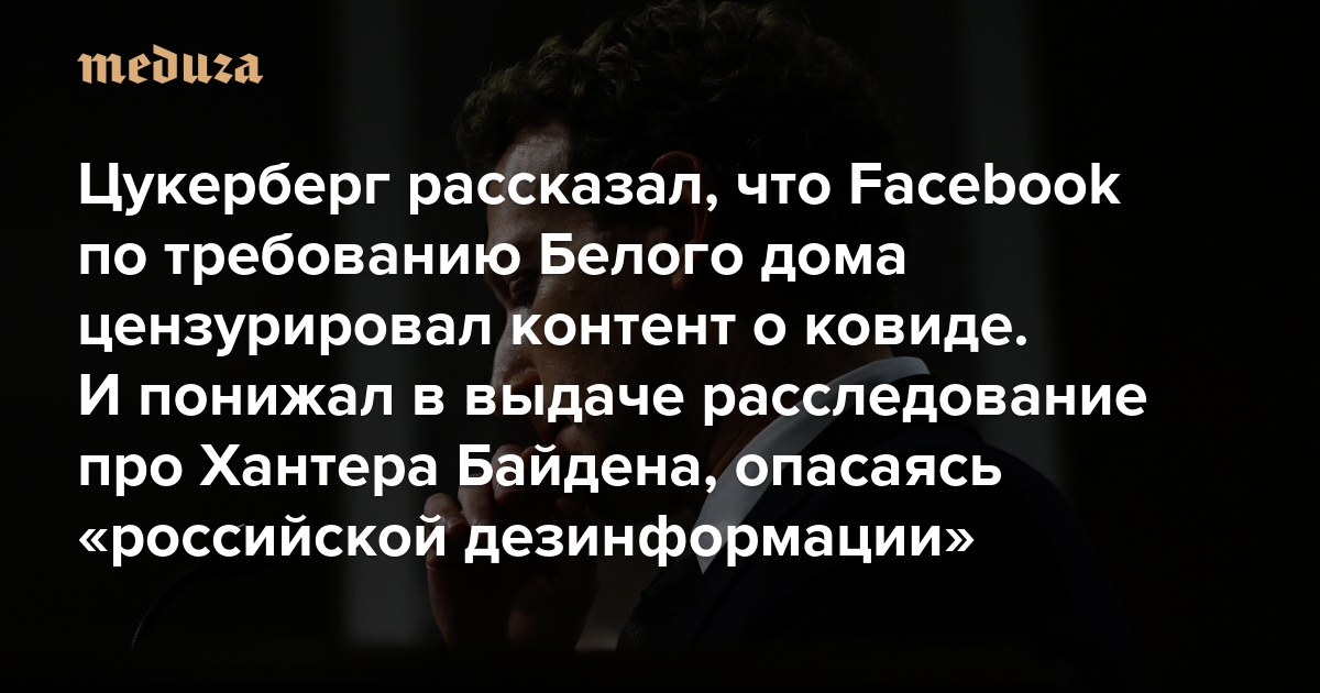Цукерберг рассказал, что Facebook по требованию Белого дома цензурировал контент, связанный с ковидом И понижал в выдаче расследование про Хантера Байдена, опасаясь «российской дезинформации»