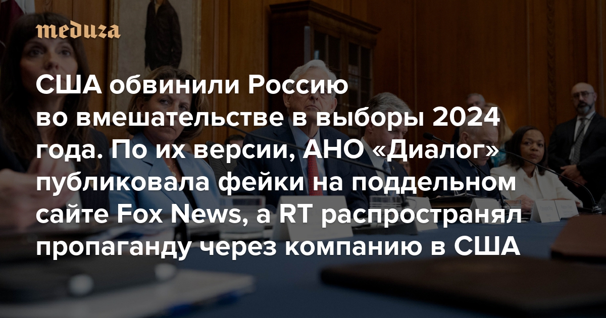 США обвинили Россию во вмешательстве в выборы 2024 года По их версии, АНО «Диалог» публиковала фейки на поддельном сайте Fox News, а RT распространял пропаганду через американскую компанию