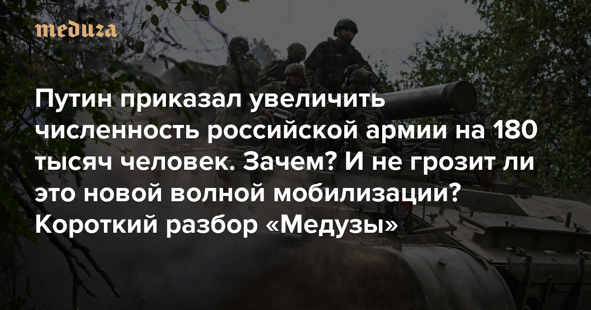 Путин приказал увеличить численность российской армии на 180 тысяч человек. Зачем? И не грозит ли это новой волной мобилизации? Короткий разбор «Медузы»