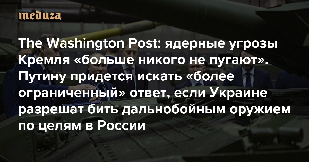 Ядерные угрозы Кремля «больше никого не пугают», говорят российские чиновники и аналитики The Washington Post: Путину придется искать «более ограниченный» ответ, если Украине разрешат бить дальнобойным оружием по целям в России