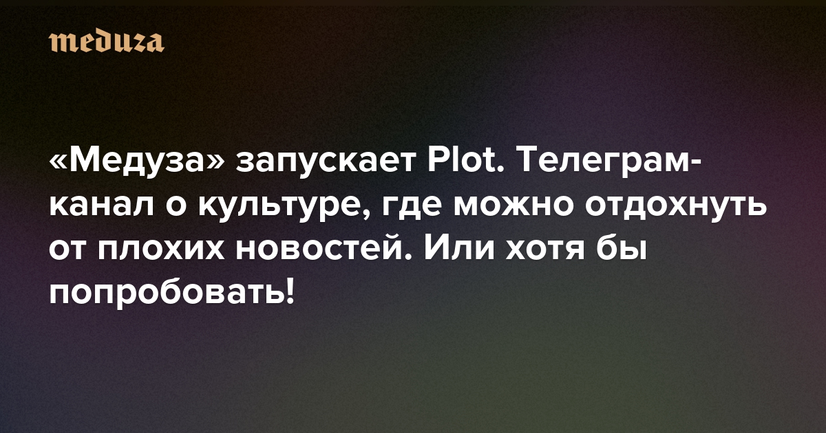 «Медуза» запускает Plot Телеграм-канал о культуре, где можно отдохнуть от плохих новостей. Или хотя бы попробовать!